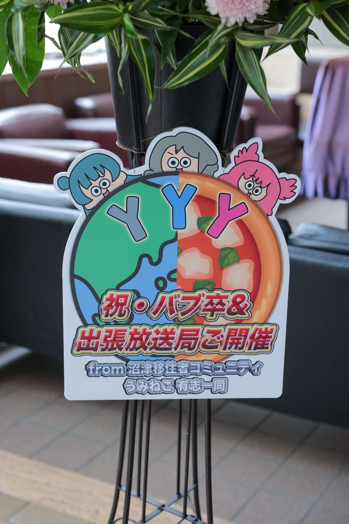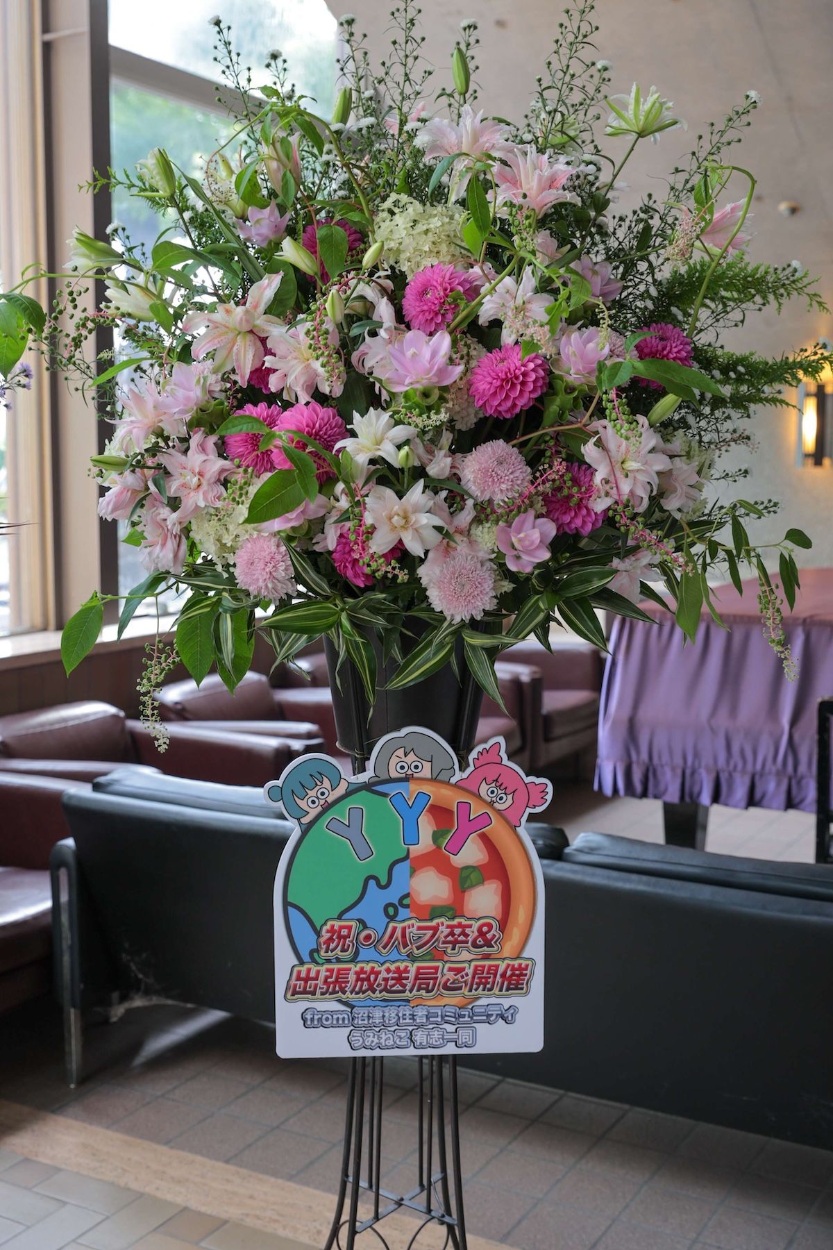 今回のイベントは、わいわいわいの地元でもあり、我々が暮らしている「沼津」で行われるということで、うみねこの有志より開催をお祝いするお花をお贈りさせていただきました。