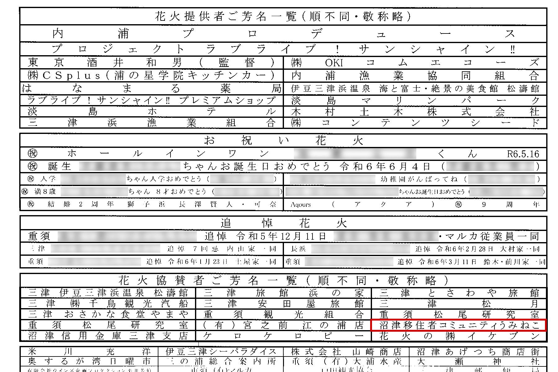 昨年の年末、1年半ぶりに開催された花火大会が、今年から夏開催となり、今回もうみねこのメンバー有志より協賛させていただくことになりました。