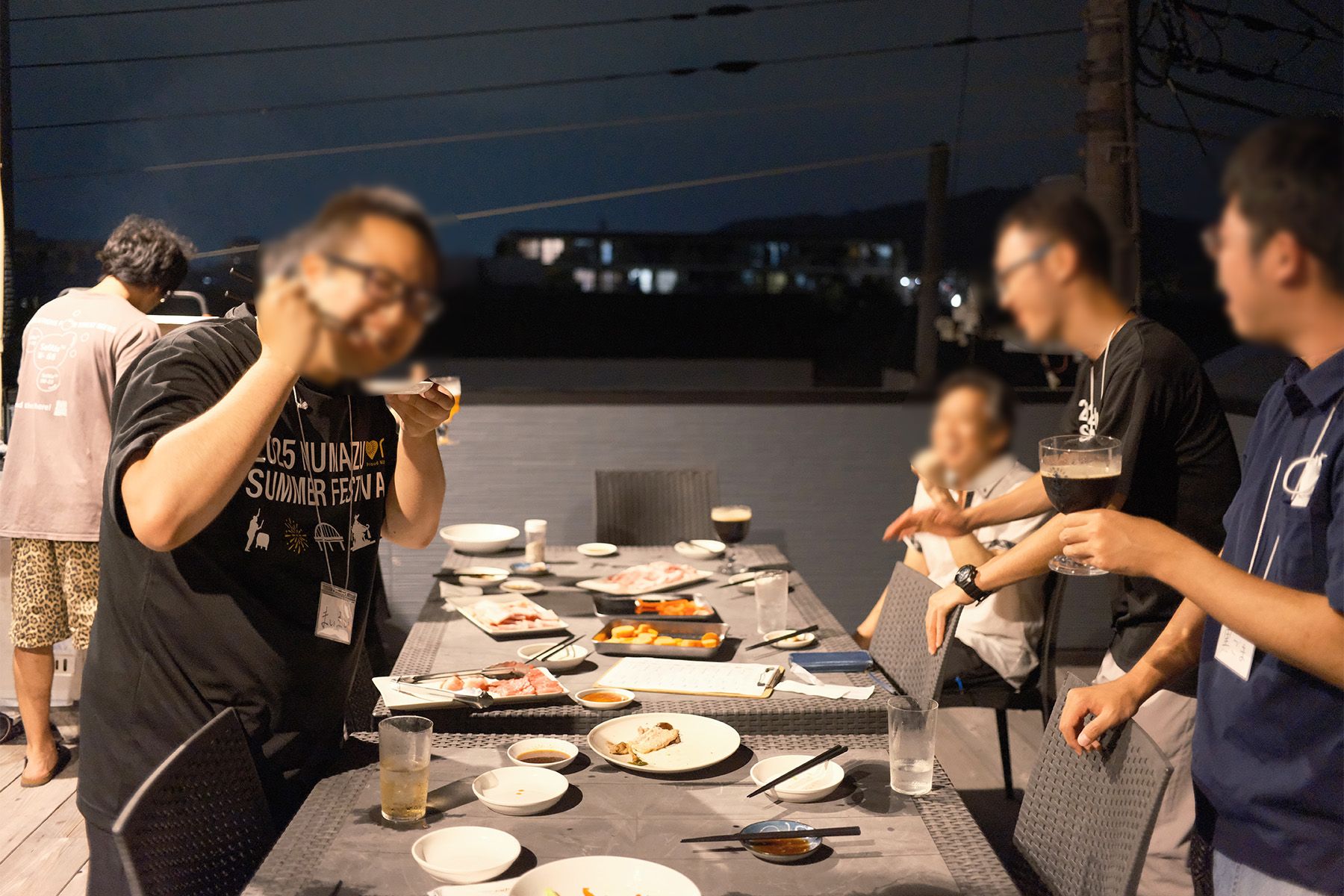総勢17名となった今回は、沼津で食肉を販売する老舗「古安」さんから仕入れたお肉を楽しみながら、沼津クラフト・SENBON SPIRITS さんが提供しているクラフトビールやサワーが飲み放題という、贅沢な内容のセットを楽しみました。