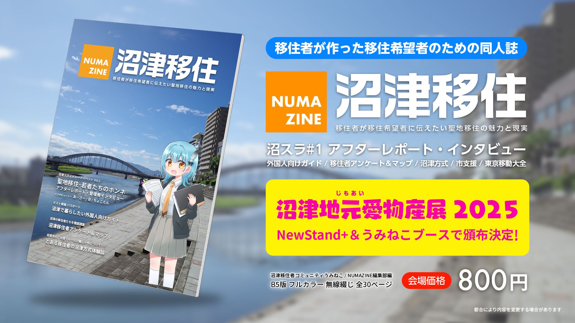 沼津移住者コミュニティ うみねこ がお送りする初の同人誌、「NUMAZINE 沼津移住」を頒布します。